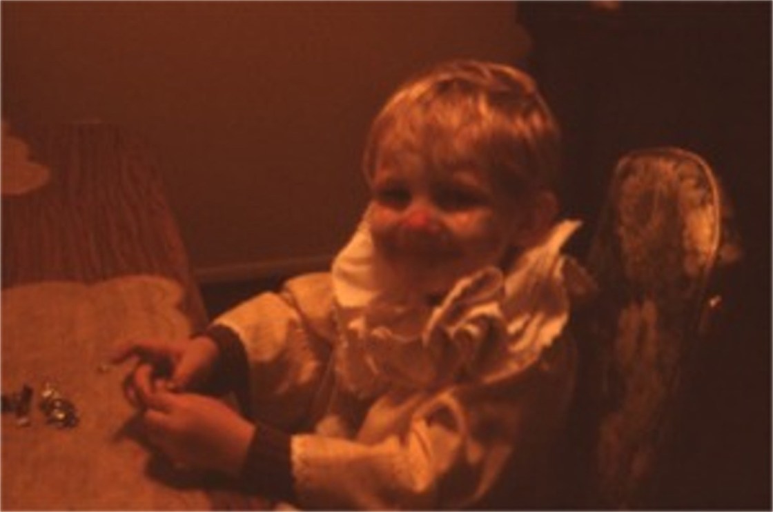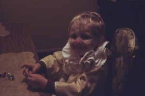 One of his earlier Halloweens with a jumping apple head for an apple head doll